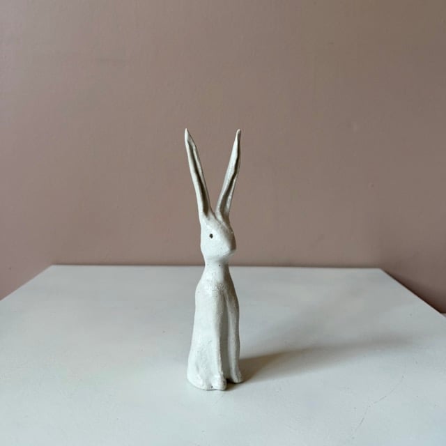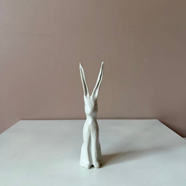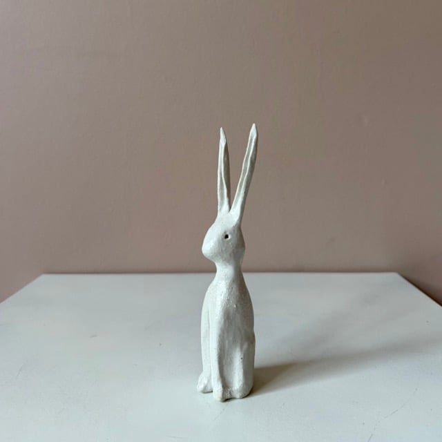 Each of these clay hares are sculpted in my studio using a textured, earthy clay. They are finished with a soft white satin glaze. No two are exactly alike - each carries its own subtle character and marks of the making process.