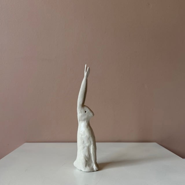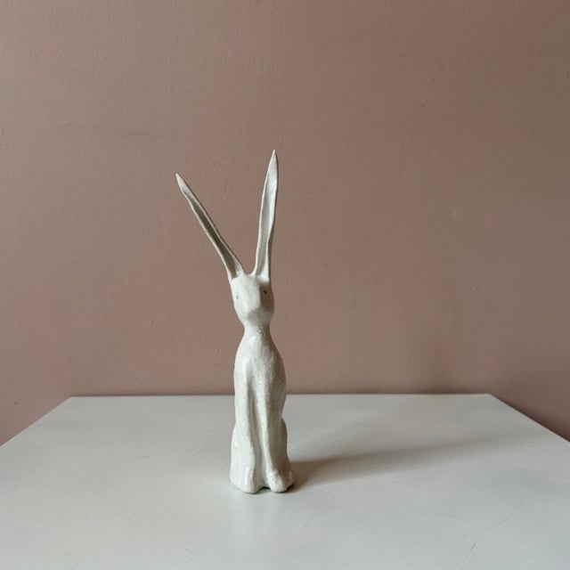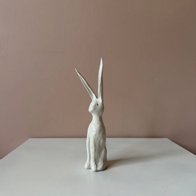 Each of these clay hares are sculpted in my studio using a textured, earthy clay. They are finished with a soft white satin glaze. No two are exactly alike - each carries its own subtle character and marks of the making process.