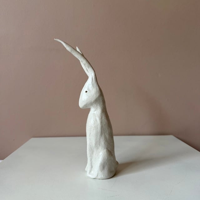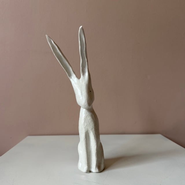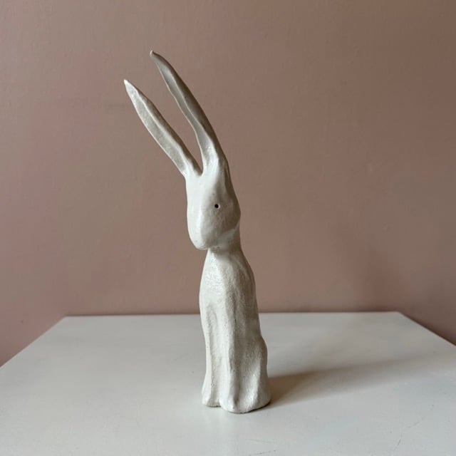 Each of these clay hares are sculpted in my studio using a textured, earthy clay. They are finished with a soft white satin glaze. No two are exactly alike - each carries its own subtle character and marks of the making process.