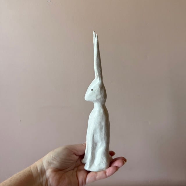 Each of these clay hares are sculpted in my studio using a textured, earthy clay. They are finished with a soft white satin glaze. No two are exactly alike - each carries its own subtle character and marks of the making process.